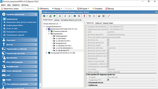 - расписание работы и перерывов сотрудников, учет их рабочего времени, контроль прохода на конкретную часть территории в зависимости от расписания;