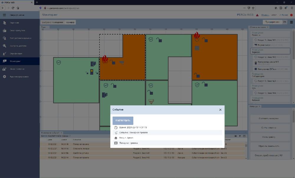 - выведение полной статистики происходящего в виде интерактивной схемы здания с пометками, соответствующими единицам оборудования и их статусу;