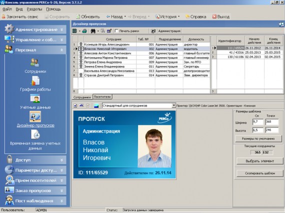 - создание уникальных по дизайну и разовых пропусков в печать прямо на месте сразу с занесением информации в память всех подключенных контроллеров, а также их удаление.
