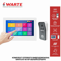 Комплект сетевого видеодомофона WARTE-10-09 PR XIP 10" белый/серебро состоящий из одного 10" сенсорного видеодомофона WARTE-DM10-09M XIP белый и одной вызывной панели видеодомофона WARTE-iDP-09PR XIP серебро (поддержка карт доступа Em Marine). Двухпроводное подключение. Разрешение видео 2Mp. Поддержка карт памяти MicroSD до 1Tb (1000Гб). Функция видеозаписи по вызову и детекции движения для всех каналов, мобильное приложение Android и IOS, Wi-Fi. Сетевое подключение до: 4 вызывных панелей + 5 двухпроводных видеодомофонов WARTE + автоматика для ворот.